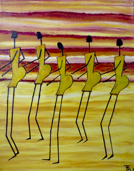 Marche africaine - huile sur toile et collage - 38x46 - 120€ - V. collection privée